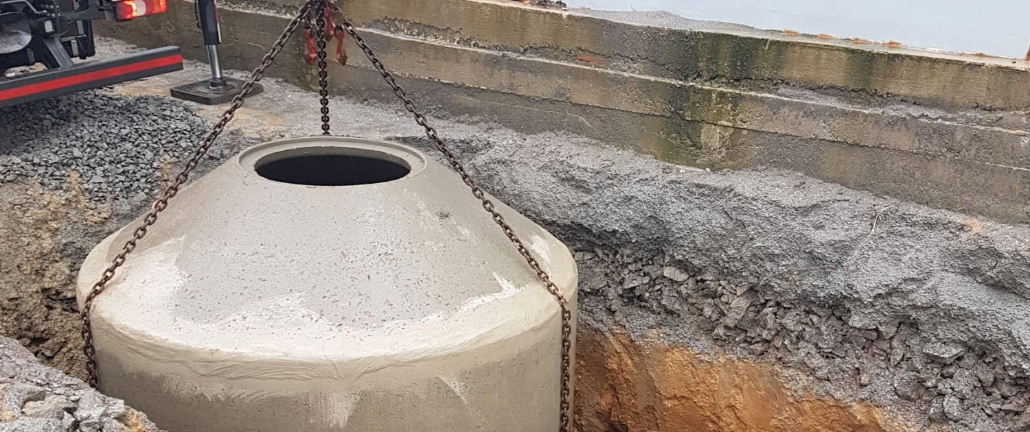 Für Ihr Haus verlegen wir Ihren Abwasser- oder Regenwasserkanal bis zur Grundstücksgrenze oder setzen Zisternen.